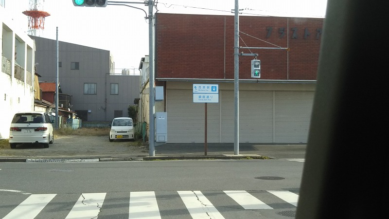 道路を挟んで反対側に標識があります。銀座通りは、かつて茂原の中心街でした。
