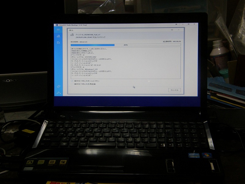 これで次に思い切ったことができると考え、バックアップアプリでのシステムごとの復活に再挑戦しました。このバックアップアプリでは、最初の完全ファイル保存に加えて、増加したファイルを逐次加えていくという方式をとっているのですが、増加分に問題があるのではないかと思い、その可能性がもっとも高いフリーズ直前の最後の増加ファイルを削除して、復活を試みます。