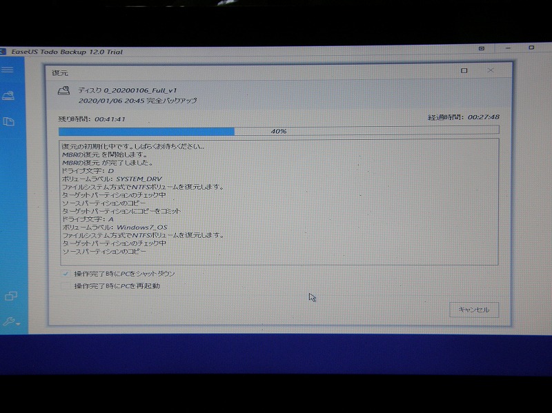 思い切って、試用版を使いMBR修復を試み、再起動。すると、何事もなかったようにデスクトップ画面に進みました。やったー、成功です!!。思わず笑みがこぼれました。やれやれの1週間がようやく報われました。粘り勝ちです。