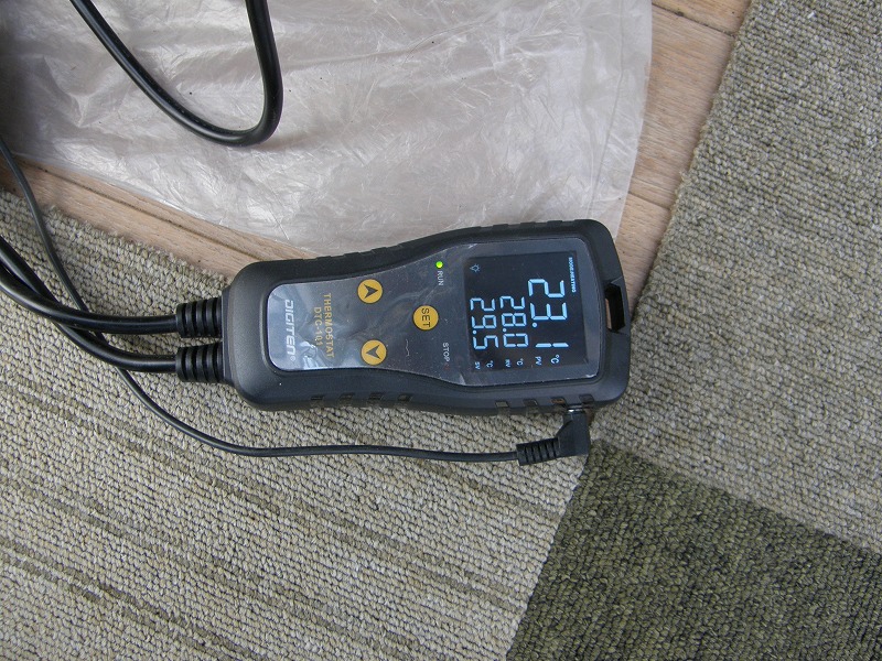 ヒートマット上の容器内の地温が28~29.5℃となるよう、温度コントローラーで制御します。