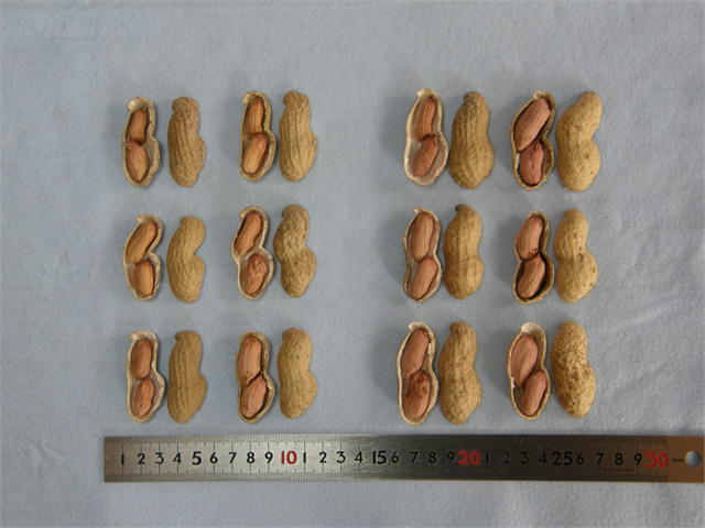 新品種名:「愛の香り」 本園育成No.1 品種登録出願No.33603 左写真:「おおまさり」右写真:「愛の香り」 「愛の香り」の特徴 ・草型は立性で、株元に多くの莢が付く(上図,資料1)。 ・莢実のサイズや重量の値が「おおまさり」のそれより10%増しで大きい(下図、資料1)。 ・ゆで豆は、「おおまさり」のそれより甘い(資料1)。 ・収穫時の見た目にインパクトがあり、食味が良いので、観光堀取園に好適。ゆで豆用として直売や市場出荷にも向く。 次のボタンで資料1へ ボタン 左2列:「おおまさり」 右2列:「愛の香り」
